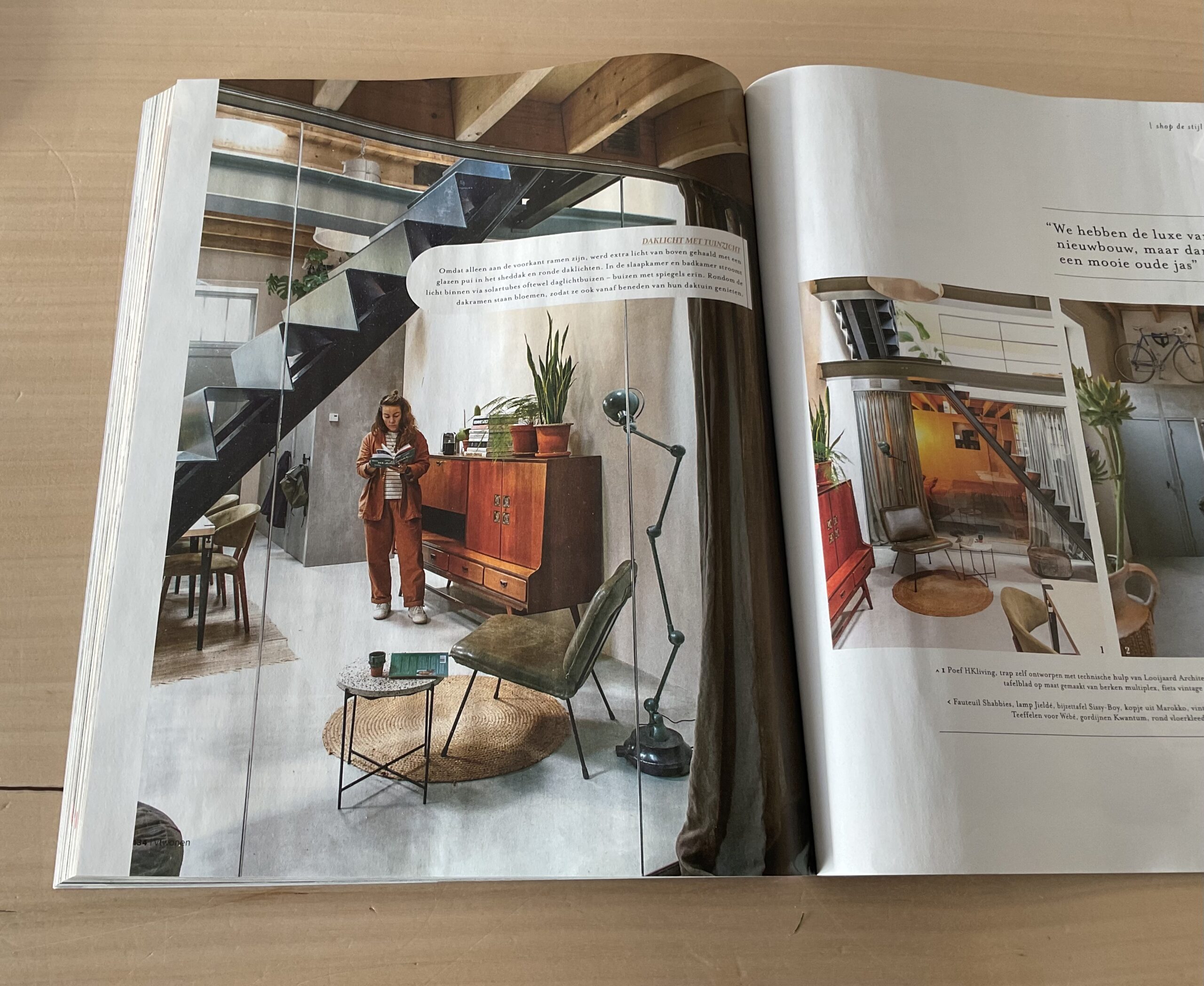 <<< VT wonen magazine, September 2025, een mooie Jieldé vloerlamp met 4 armen in een Industrieel Vintage woonstijl.