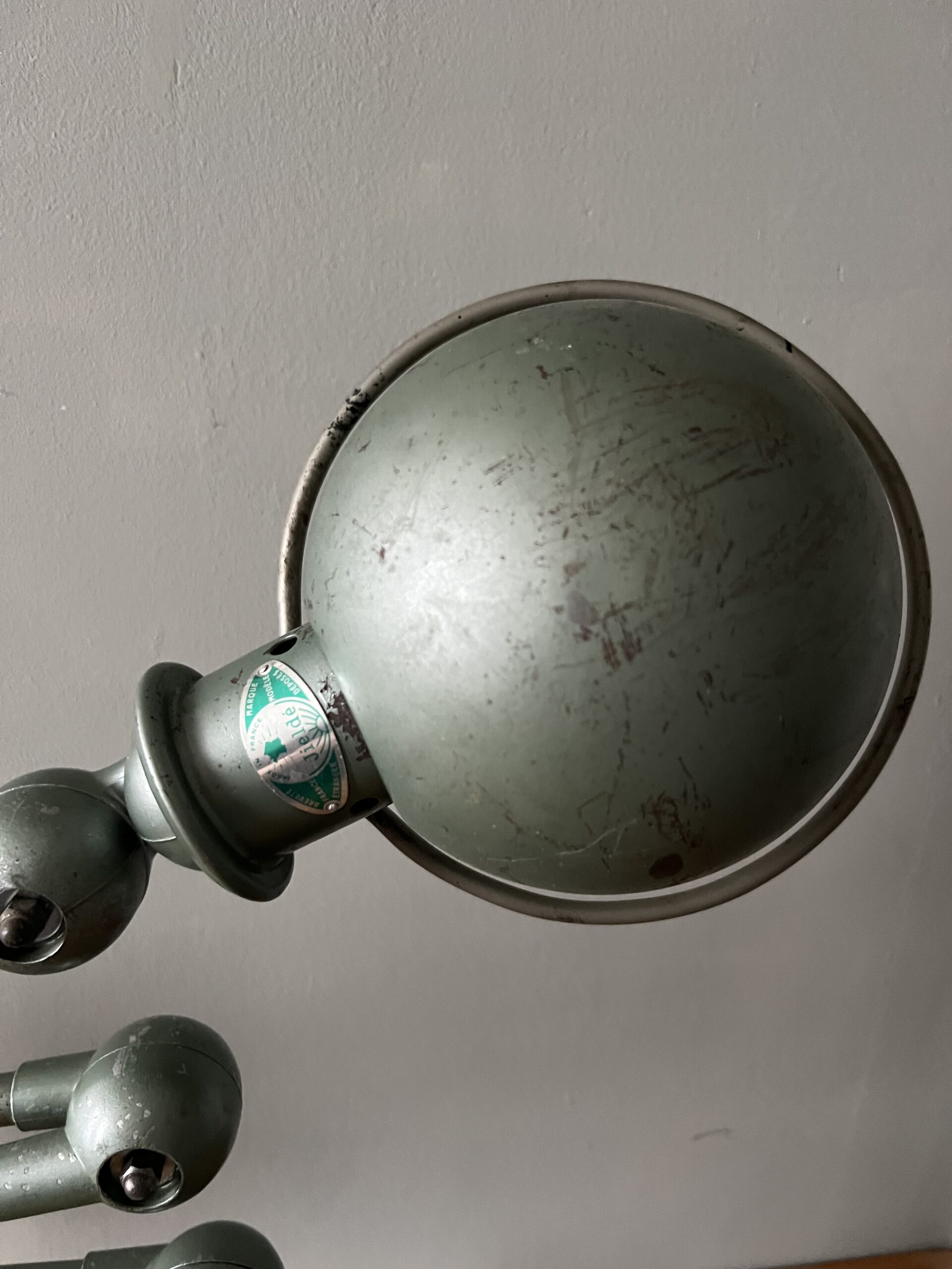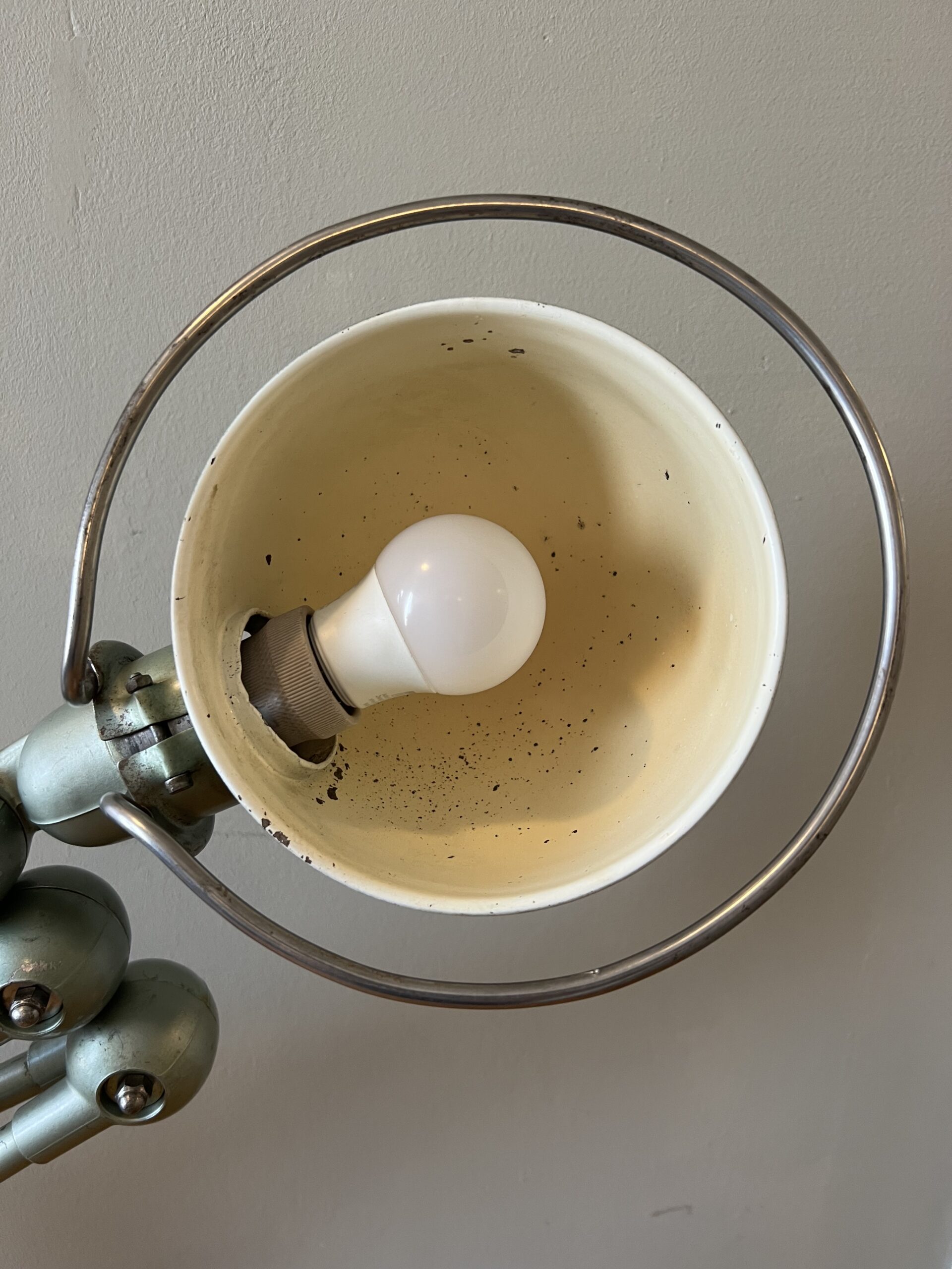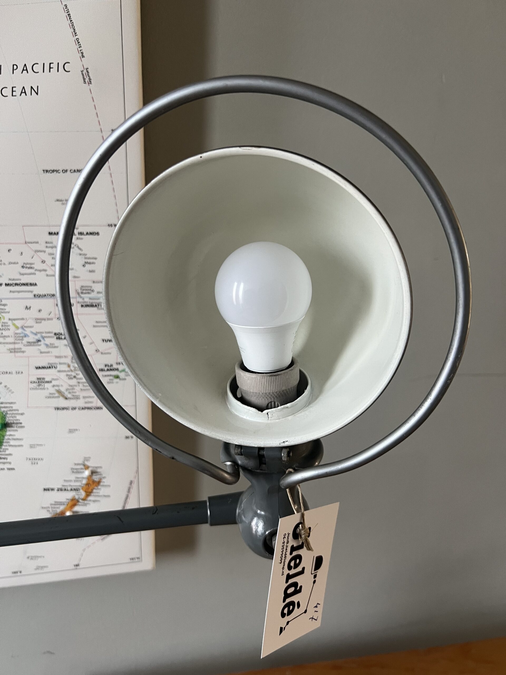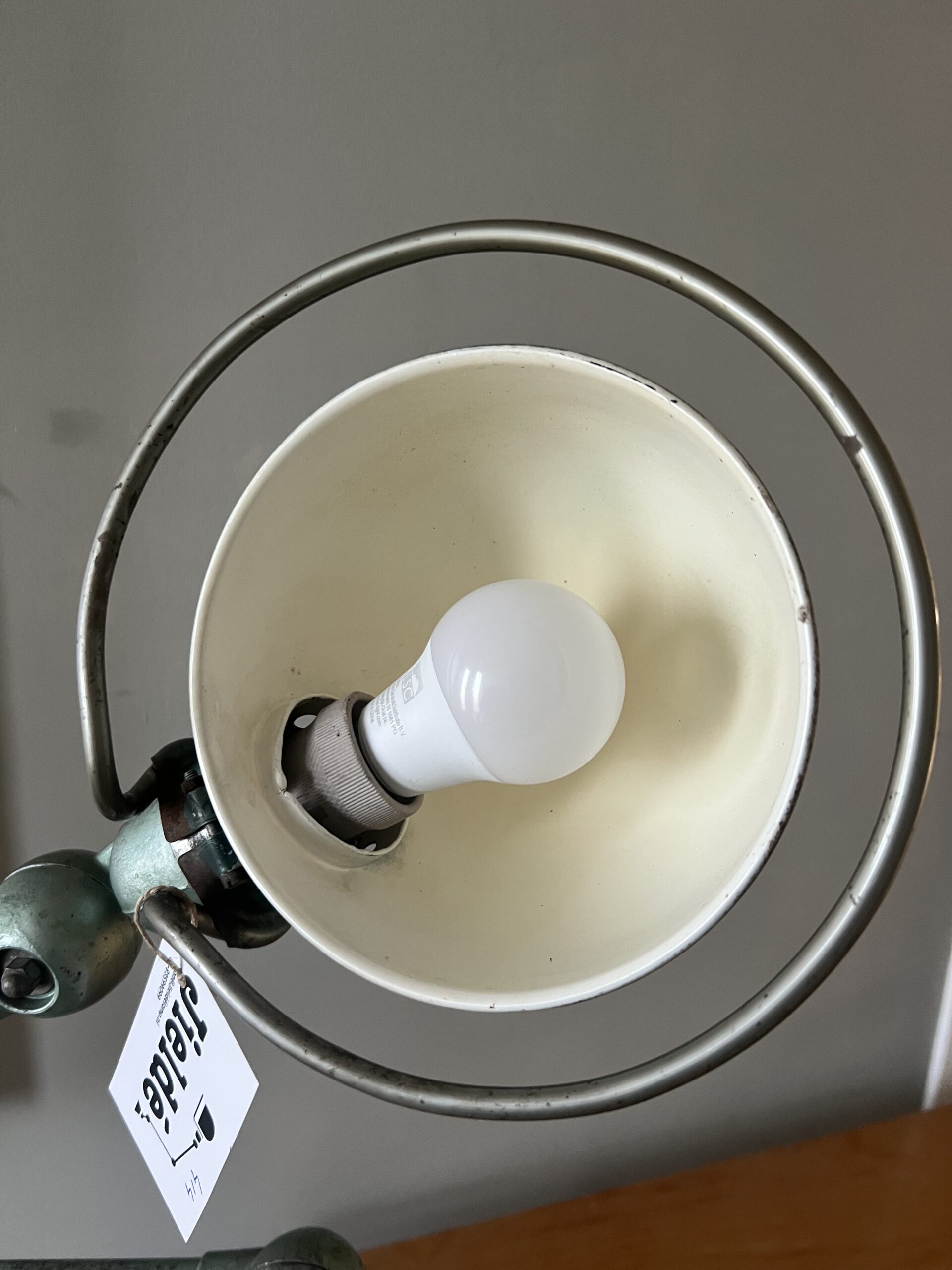 De Jieldé lampen die wij zoeken en vinden in Frankrijk zijn bijna altijd lampen in de originele kleur, sommige nog met de originele B22 bajonet fitting, die we standaard vervangen door een keramische (normale) E27 fitting. We komen ook af en toe vrij zeldzame Jieldé lampen tegen die gebruikt zijn op bijzondere werkplekken. De lampen worden allemaal schoongemaakt, nagekeken, gecontroleerd op werking en eventueel gemonteerd op een originele Jieldé bureauklem of op een geborstelde remschijf als industriele voet. Uiteraard kunnen we ook specifieke uitvoeringen of kleuren gaan zoeken als zoekopdracht. En altijd no cure no pay. Hierbij de actuele voorraad, APRIL 2026.