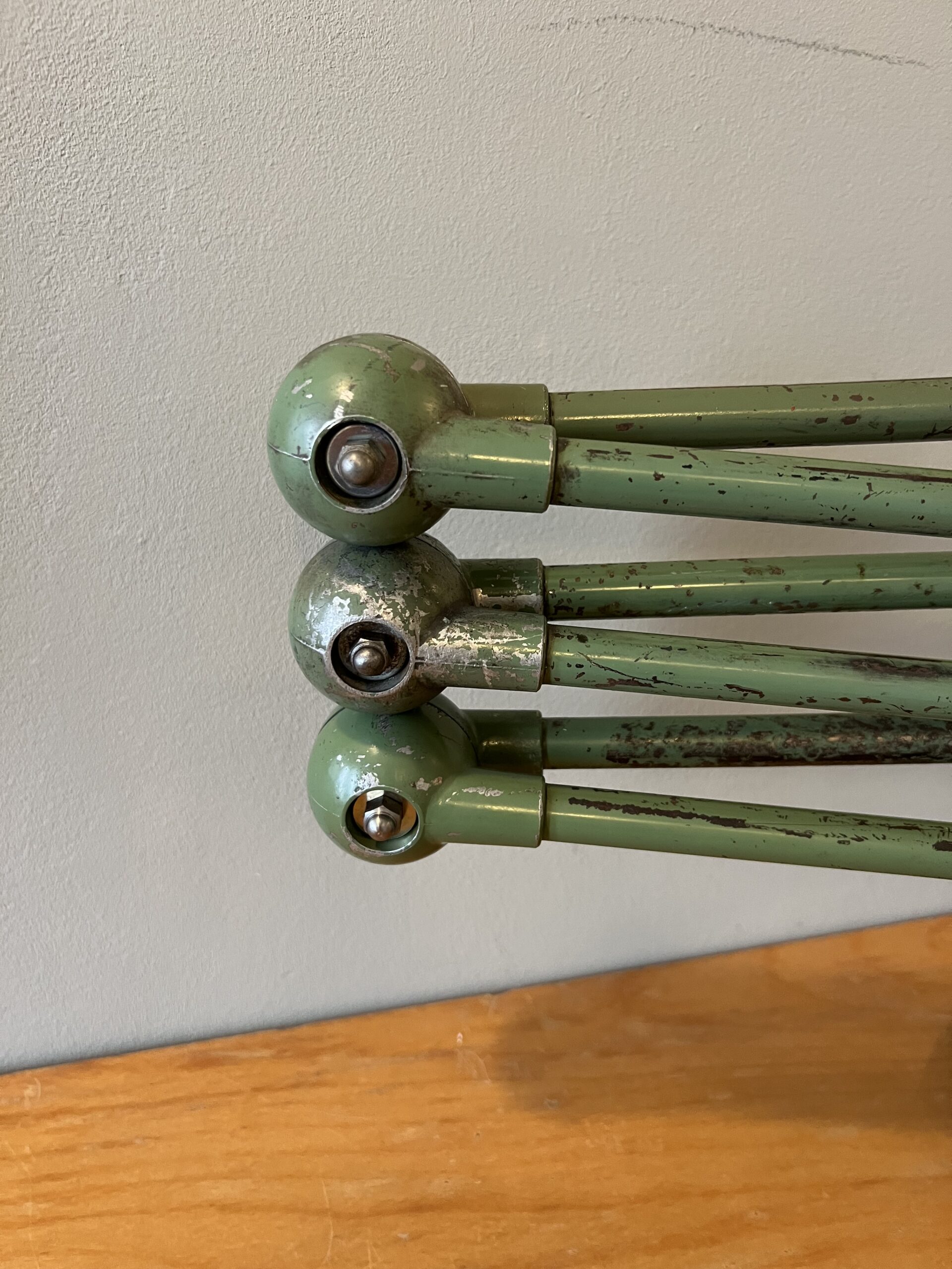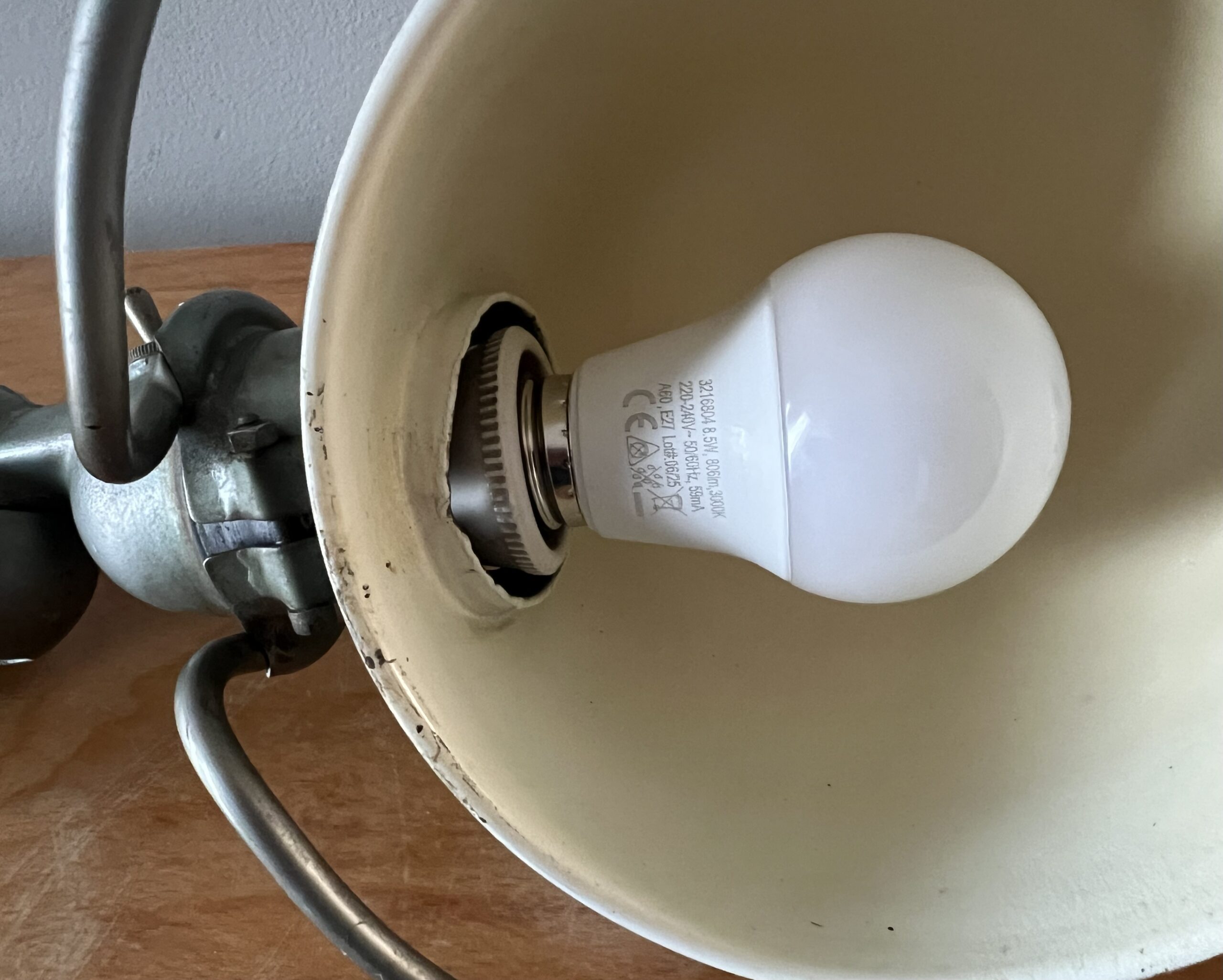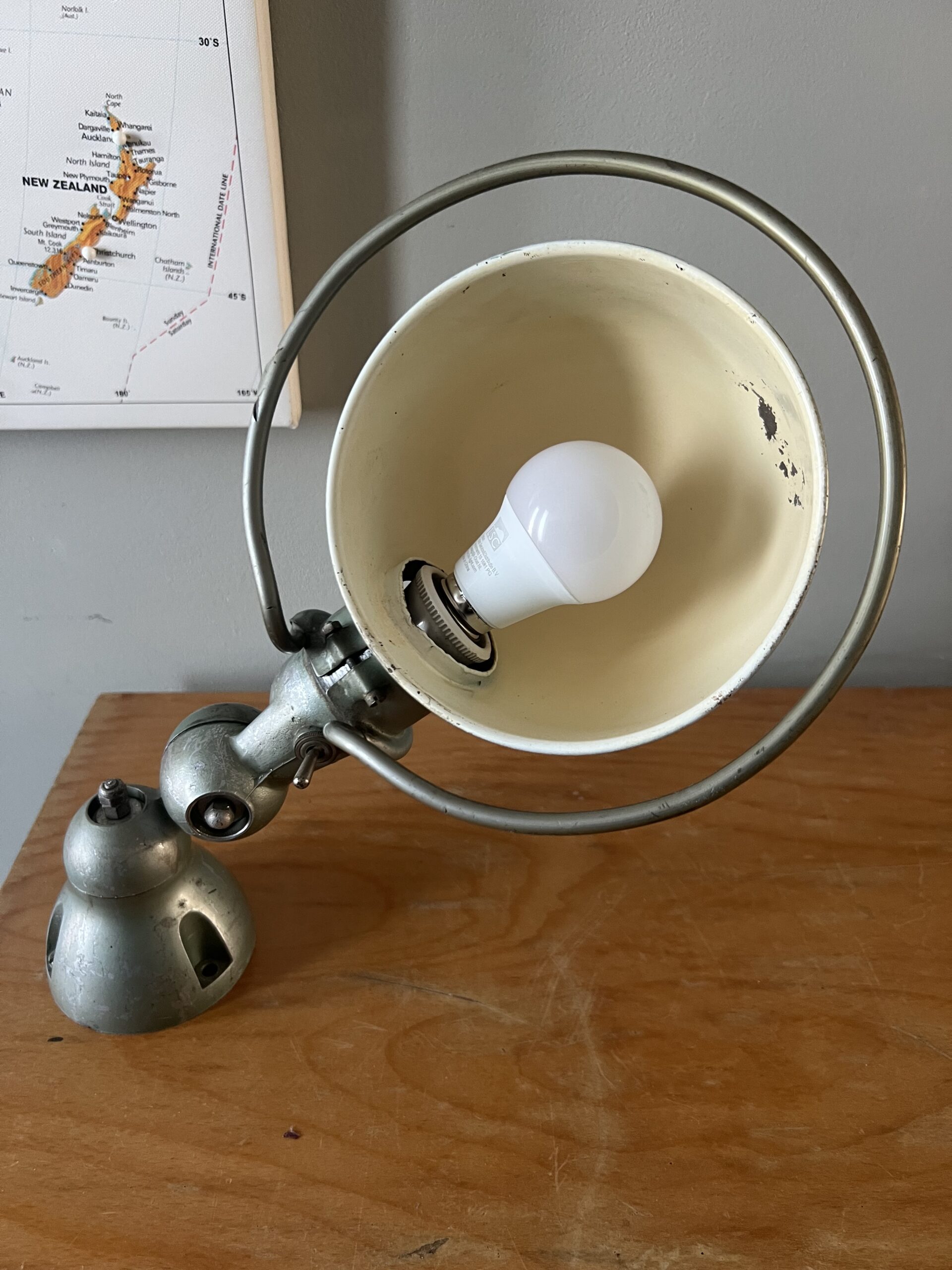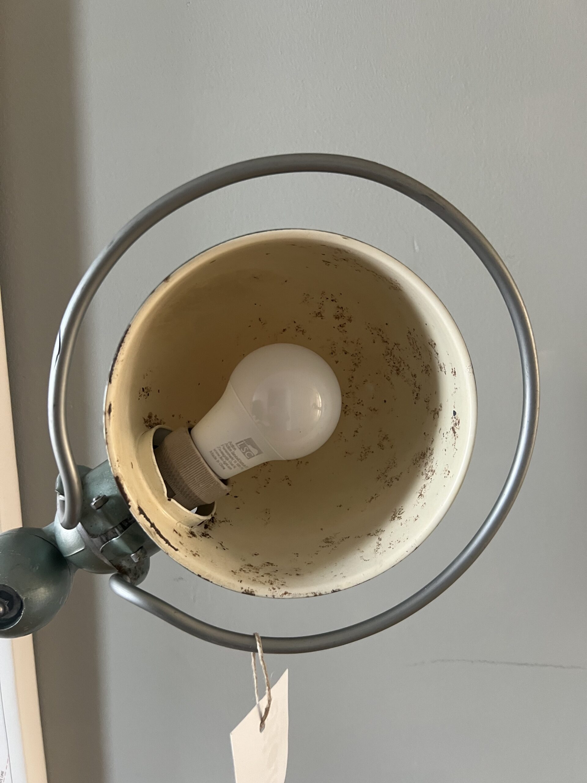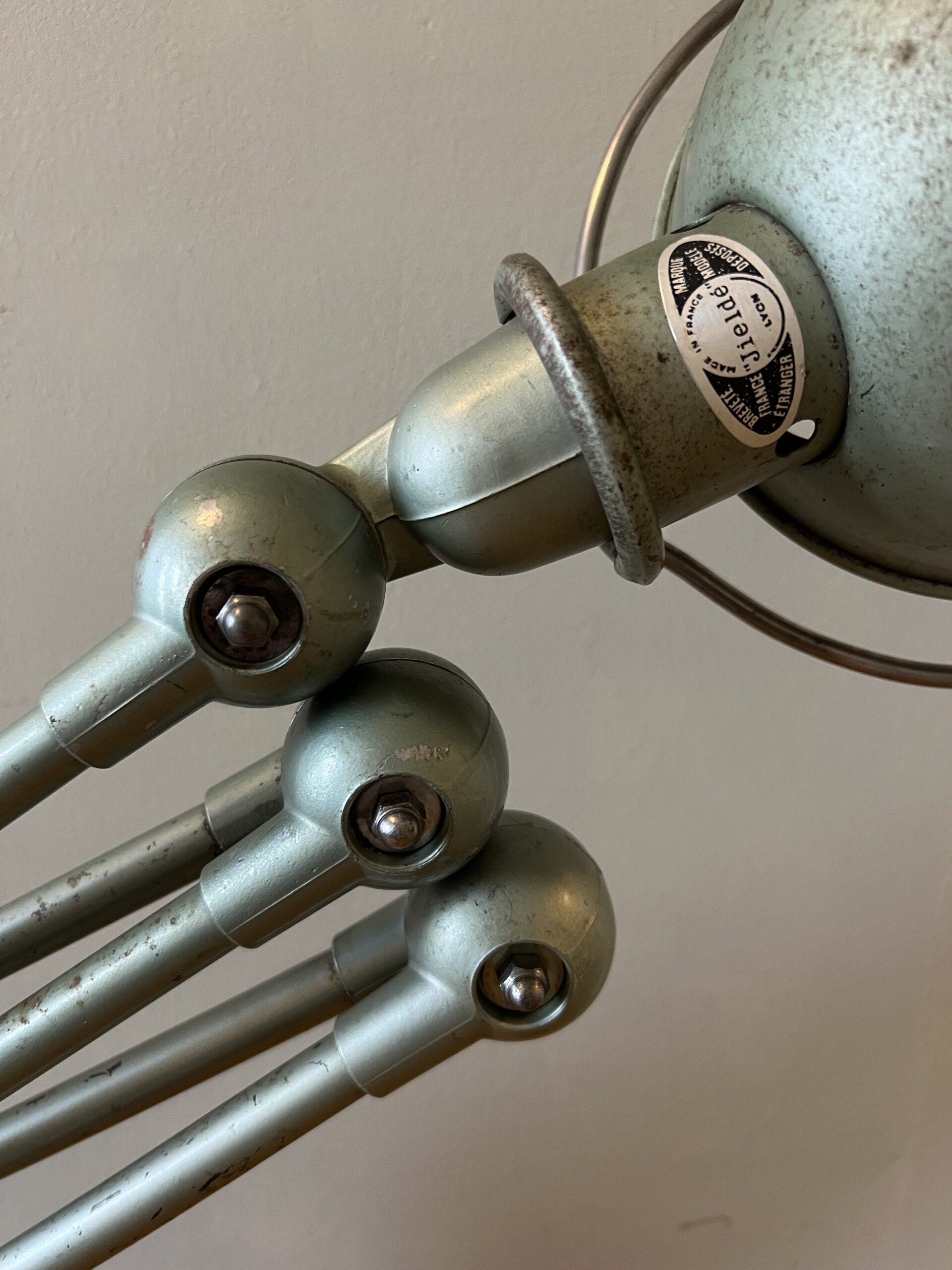 De Jieldé lampen die wij zoeken en vinden in Frankrijk zijn bijna altijd lampen in de originele kleur, sommige nog met de originele B22 bajonet fitting, die we standaard vervangen door een keramische (normale) E27 fitting. We komen ook af en toe vrij zeldzame Jieldé lampen tegen die gebruikt zijn op bijzondere werkplekken. De lampen worden allemaal schoongemaakt, nagekeken, gecontroleerd op werking en eventueel gemonteerd op een originele Jieldé bureauklem of op een geborstelde remschijf als industriele voet. Uiteraard kunnen we ook specifieke uitvoeringen of kleuren gaan zoeken als zoekopdracht. En altijd no cure no pay. Hierbij de actuele voorraad, APRIL 2026.