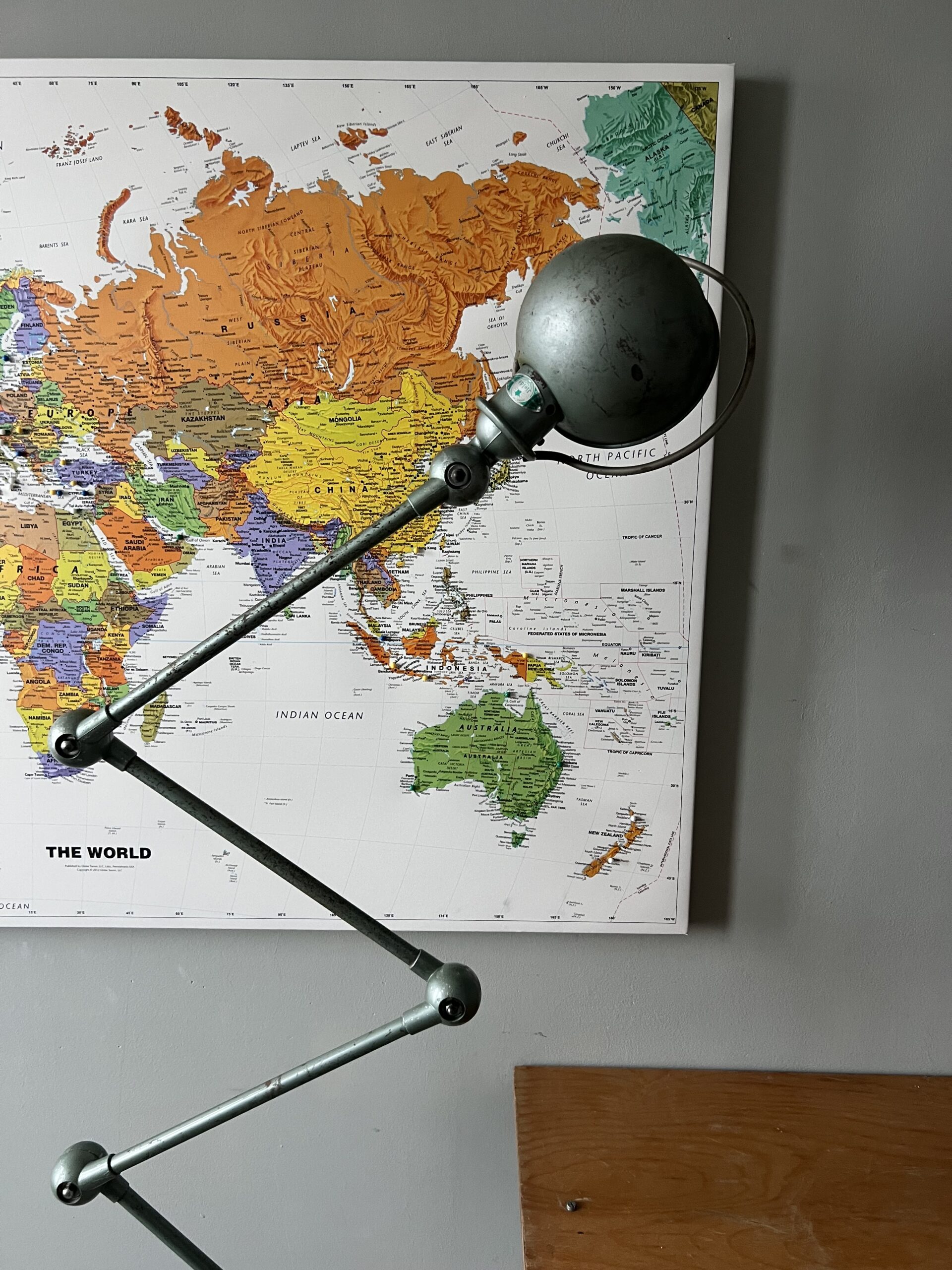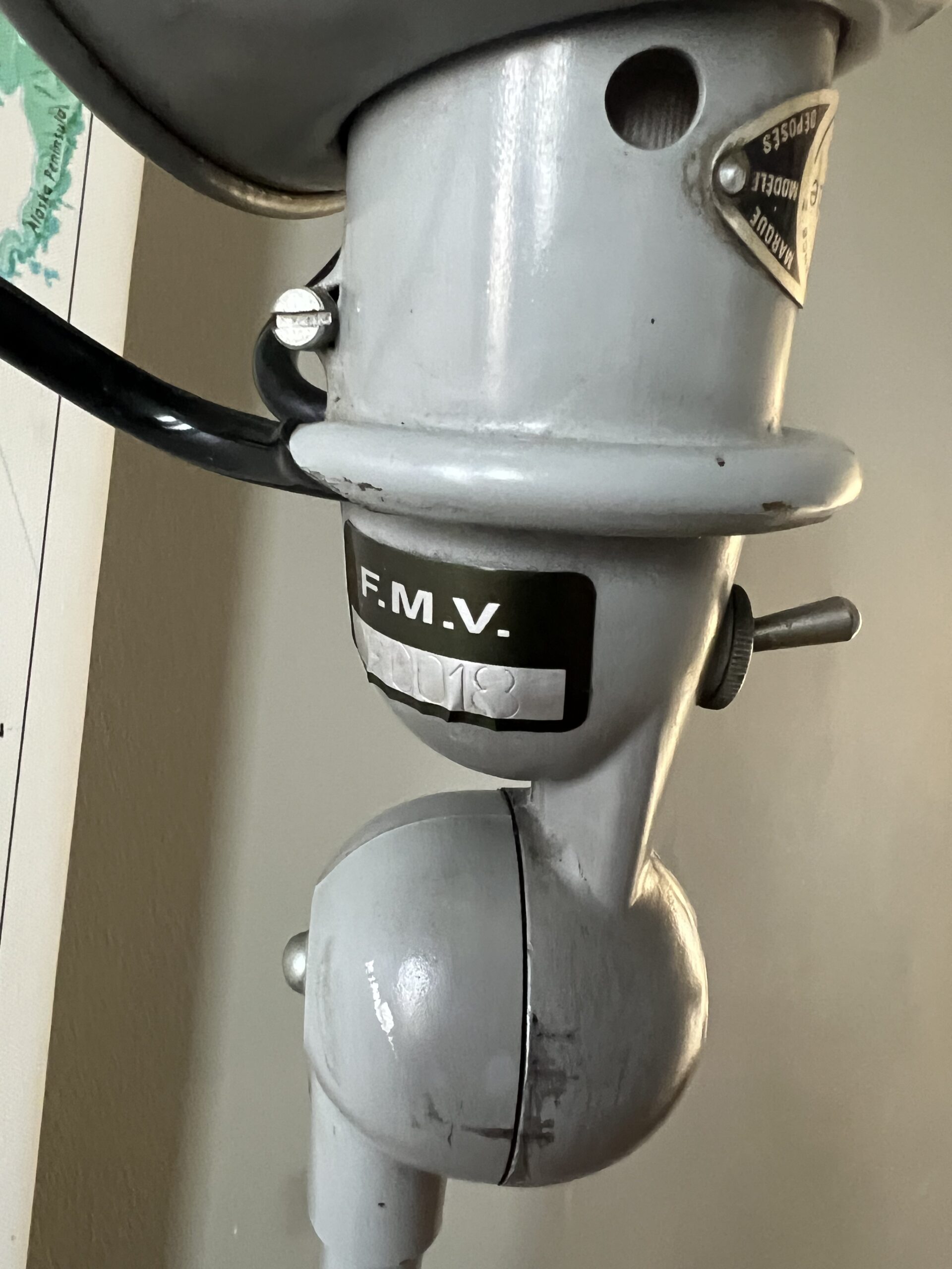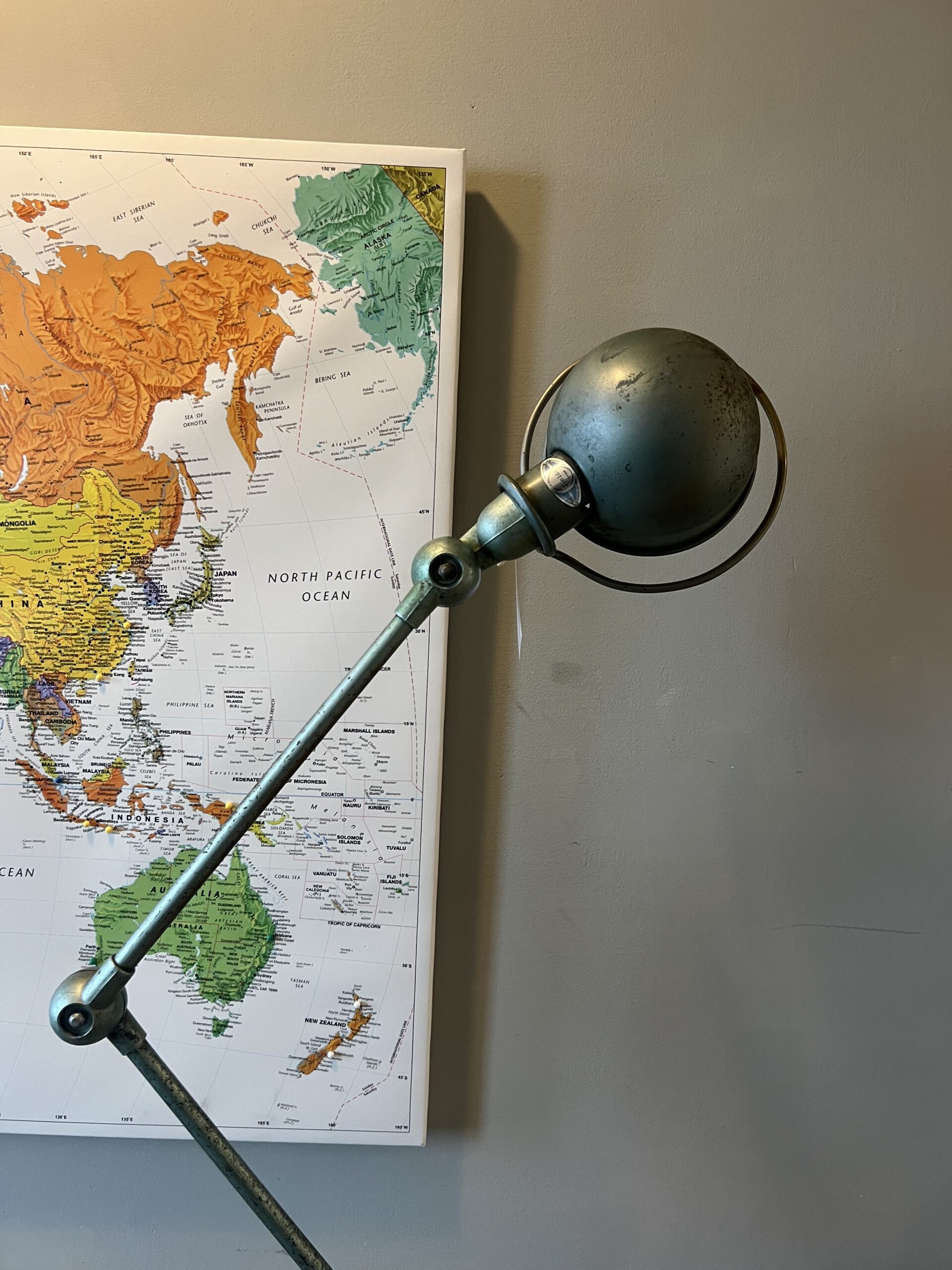 Jieldé lamp als onderdeel van deze industriële machine. In dezelfde grijze kleur als de machine.
