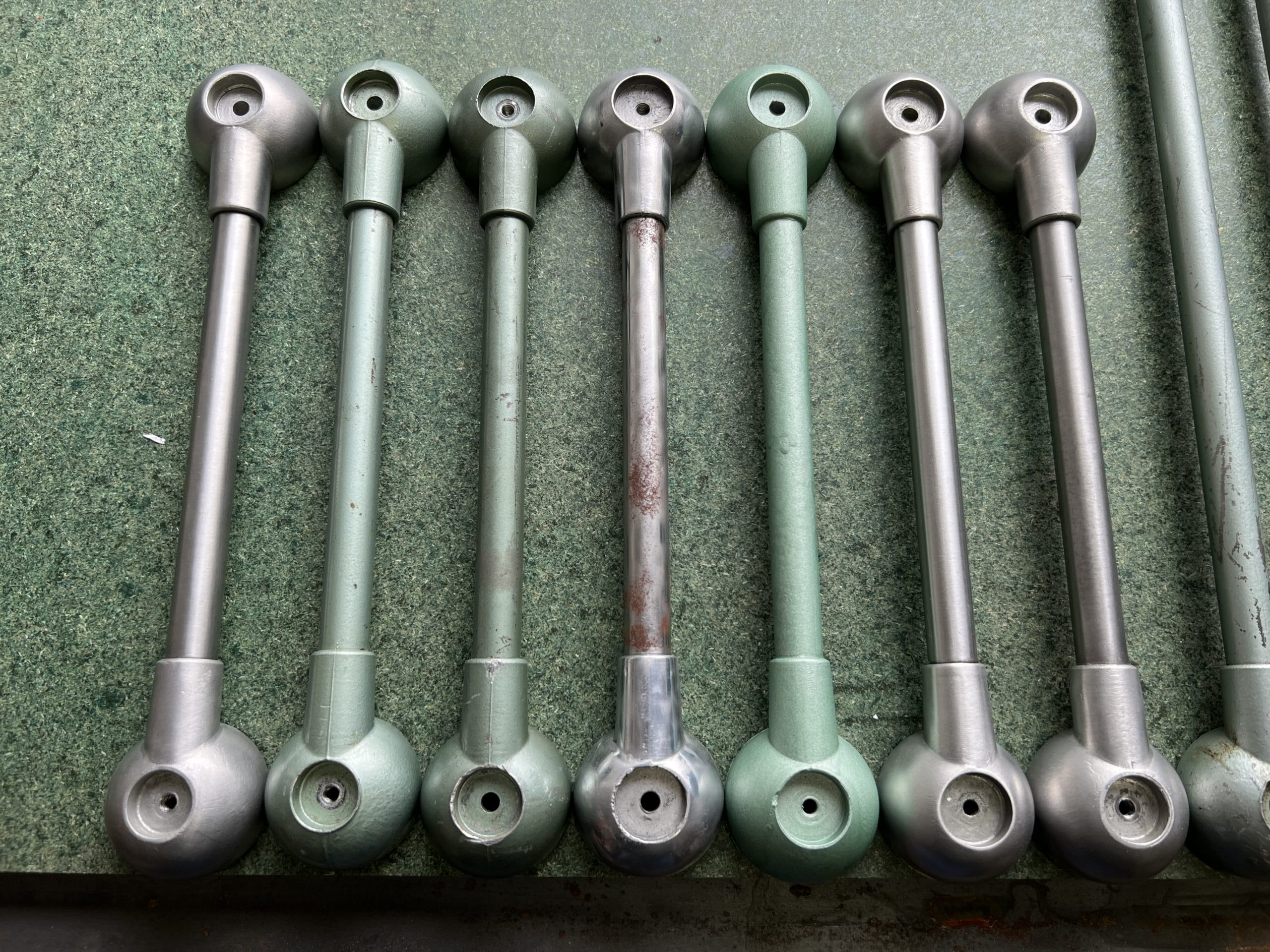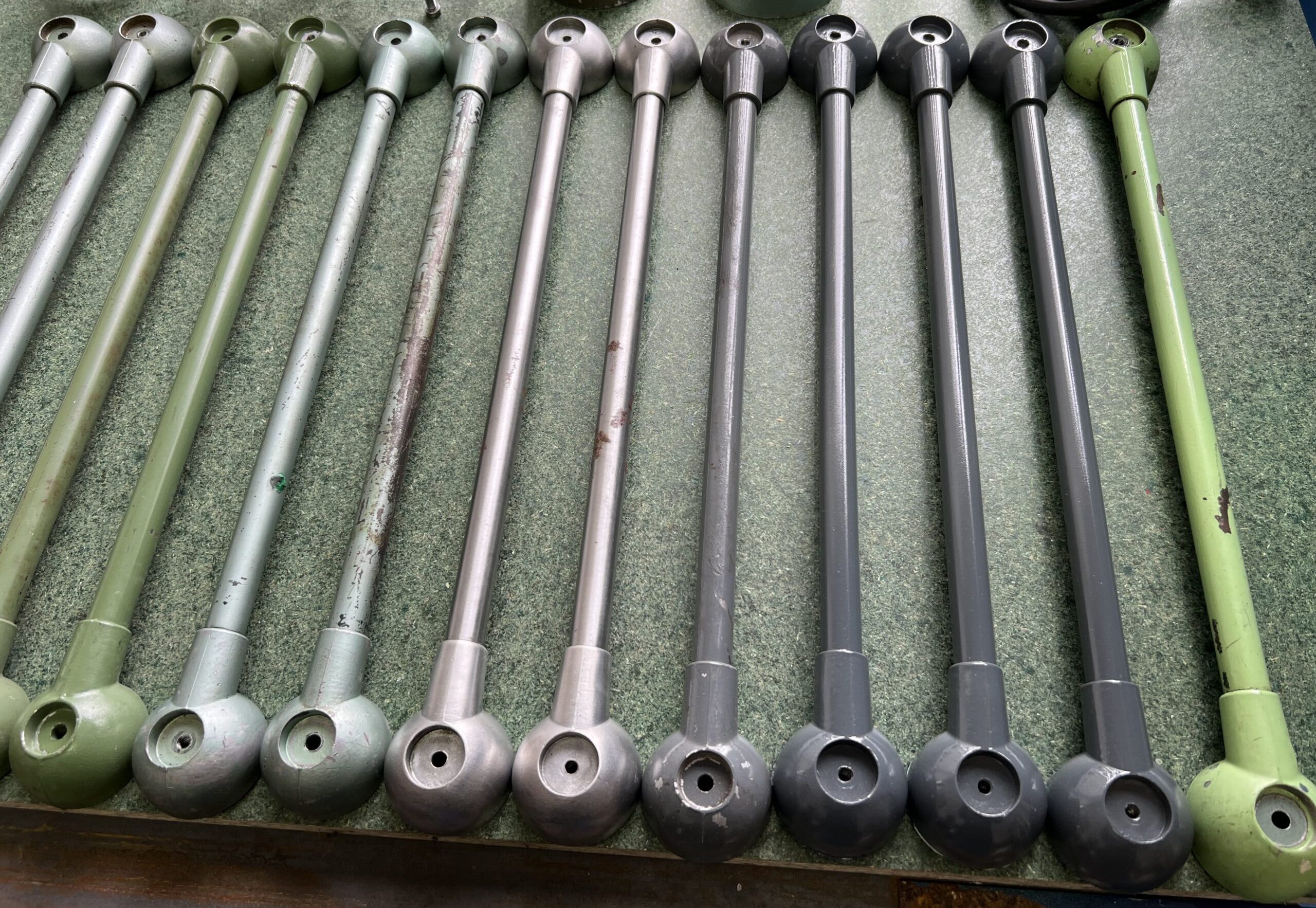 Bras d'origine 40 cm. Diverses couleurs : vert olive, vert vespa, gris machine. Autres couleurs sur demande. A l'exclusion du jeu de rondelles et du boulon/écrou, par pièce € 55.00. Ensemble complet inclus €75.00.