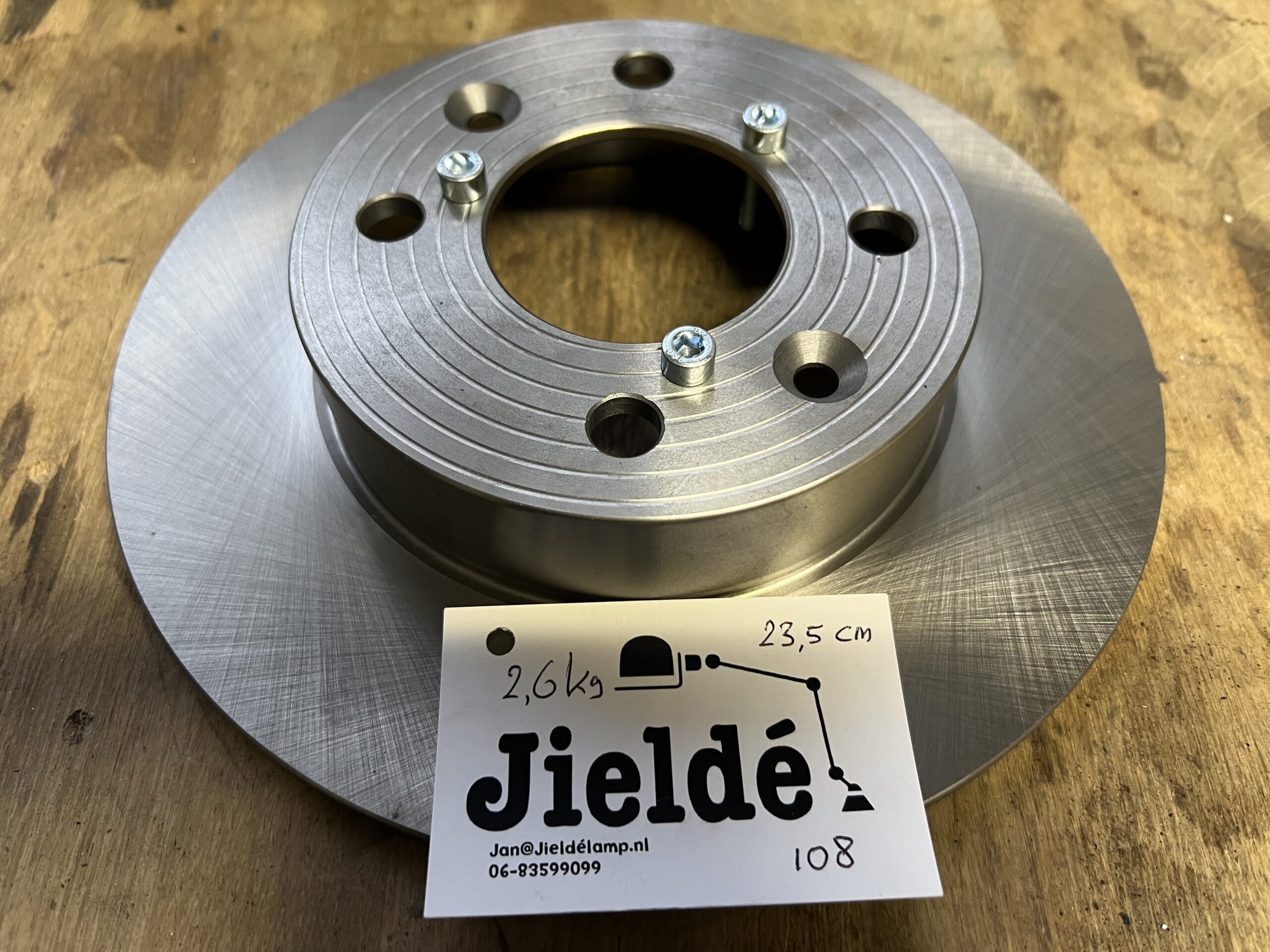 108 Disque de frein en tant que pied, NOUVEAU et pré-percé avec précision. (2,6 kg, D= 23,5 cm). Trois boulons à tête creuse sont inclus. VENDU