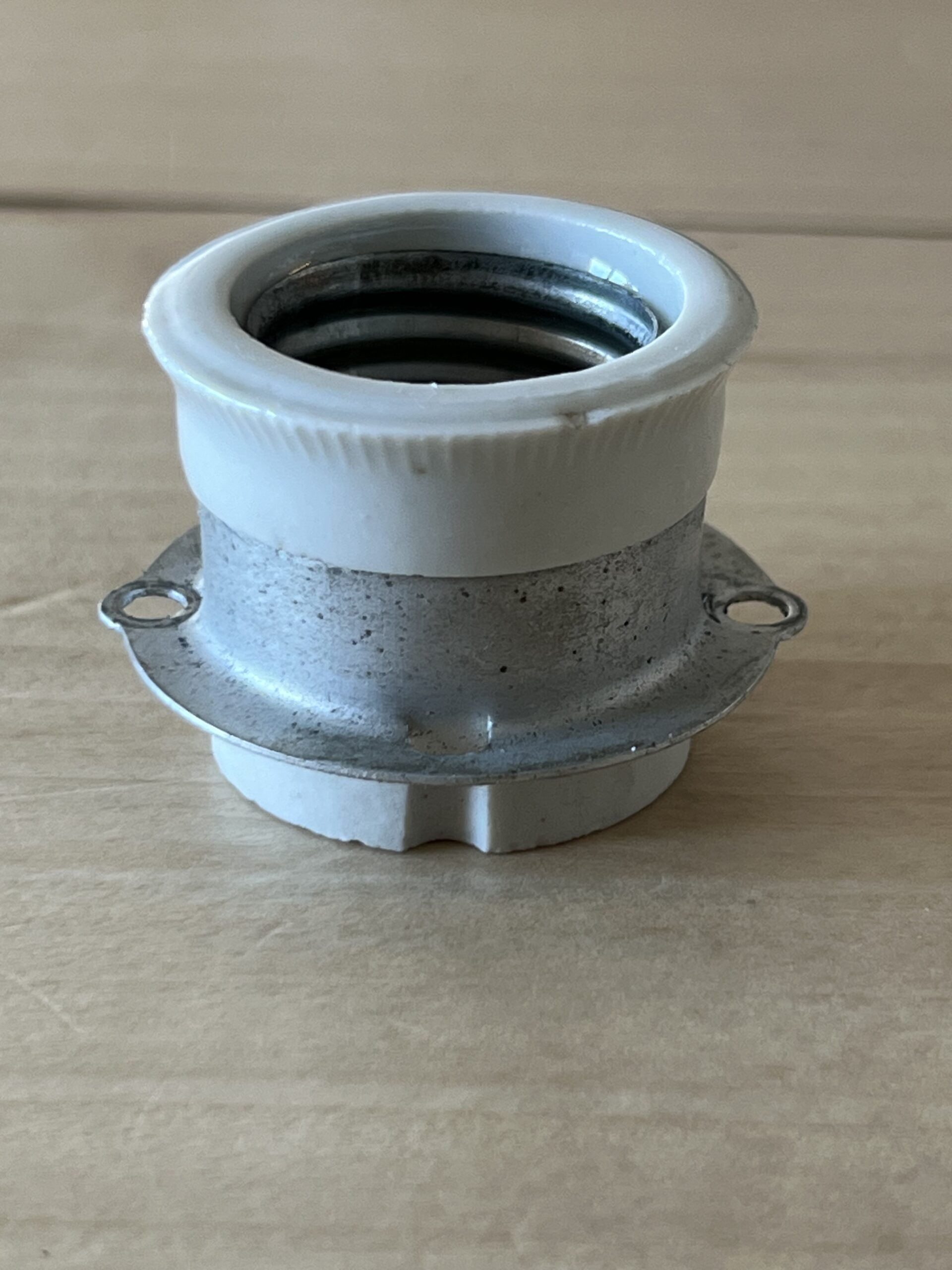 501 Raccord céramique original Jieldé E27 avec anneau de fixation et deux boulons. NOUVEAU