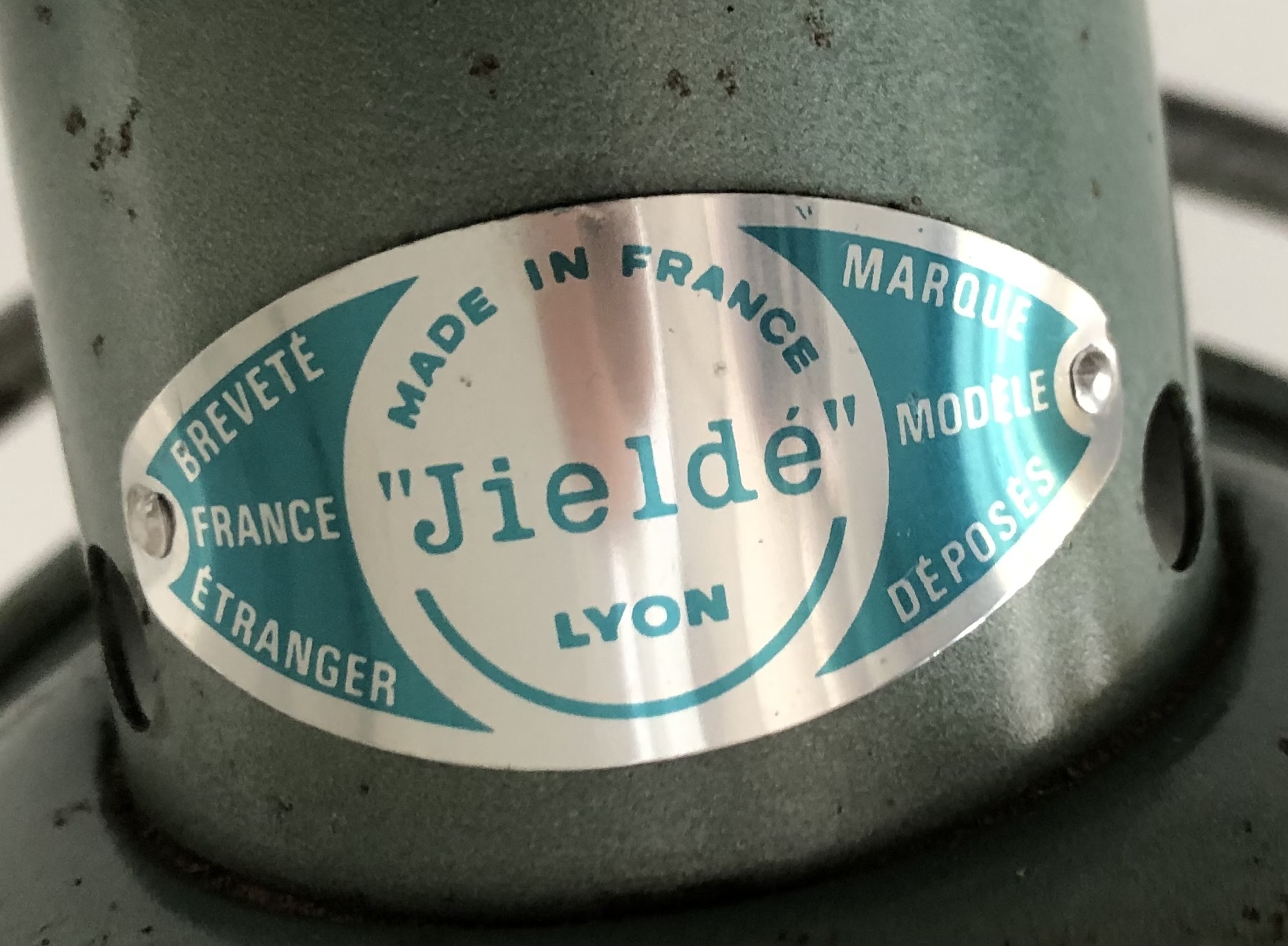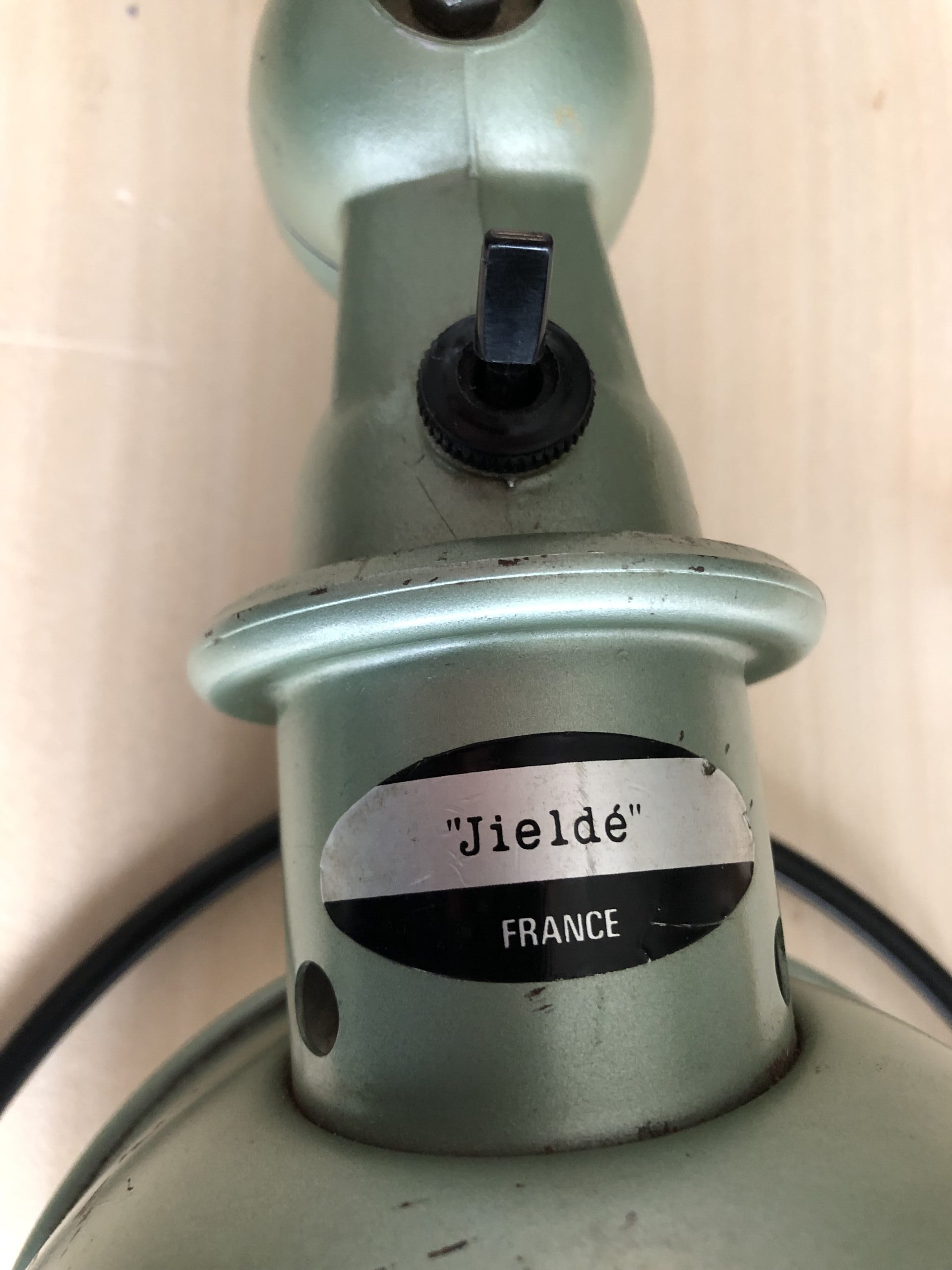 Jean- Louis Domecq ontwierp zijn Jieldé lamp al in april 1950. 75 jaar later worden de Jieldé lampen nog steeds gemaakt in Saint-Priest nabij Lyon, in Frankrijk. Eén van de belangrijkste kenmerken waar we op letten om te bepalen hoe oud een Jieldé lamp, is het etiket.