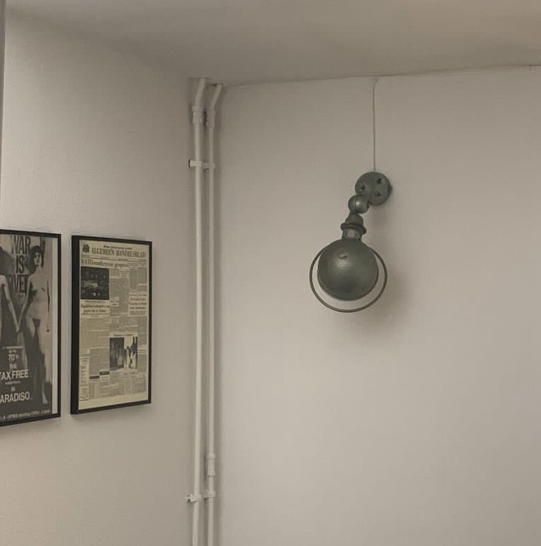 Een hele mooie vintage Vespa kleur lamp, als Wandlamp op een verdeeldoos. Petra uit Dirksland heeft in de voet een origineel Jieldé montage plaatje gemonteerd voor een fraaie maar ook veilige aansluiting van het snoer. Petra is erg content met deze oplossing voor haar lamp uit de beginperiode periode 1950-1960.