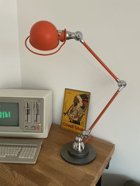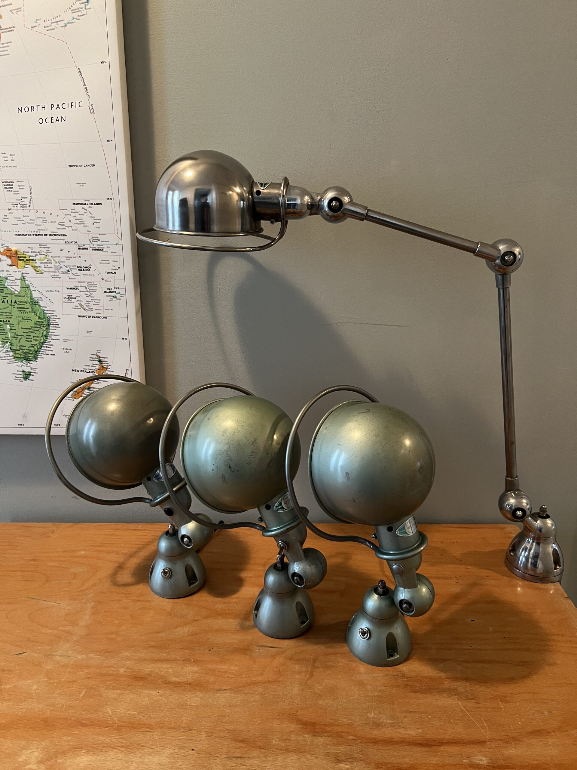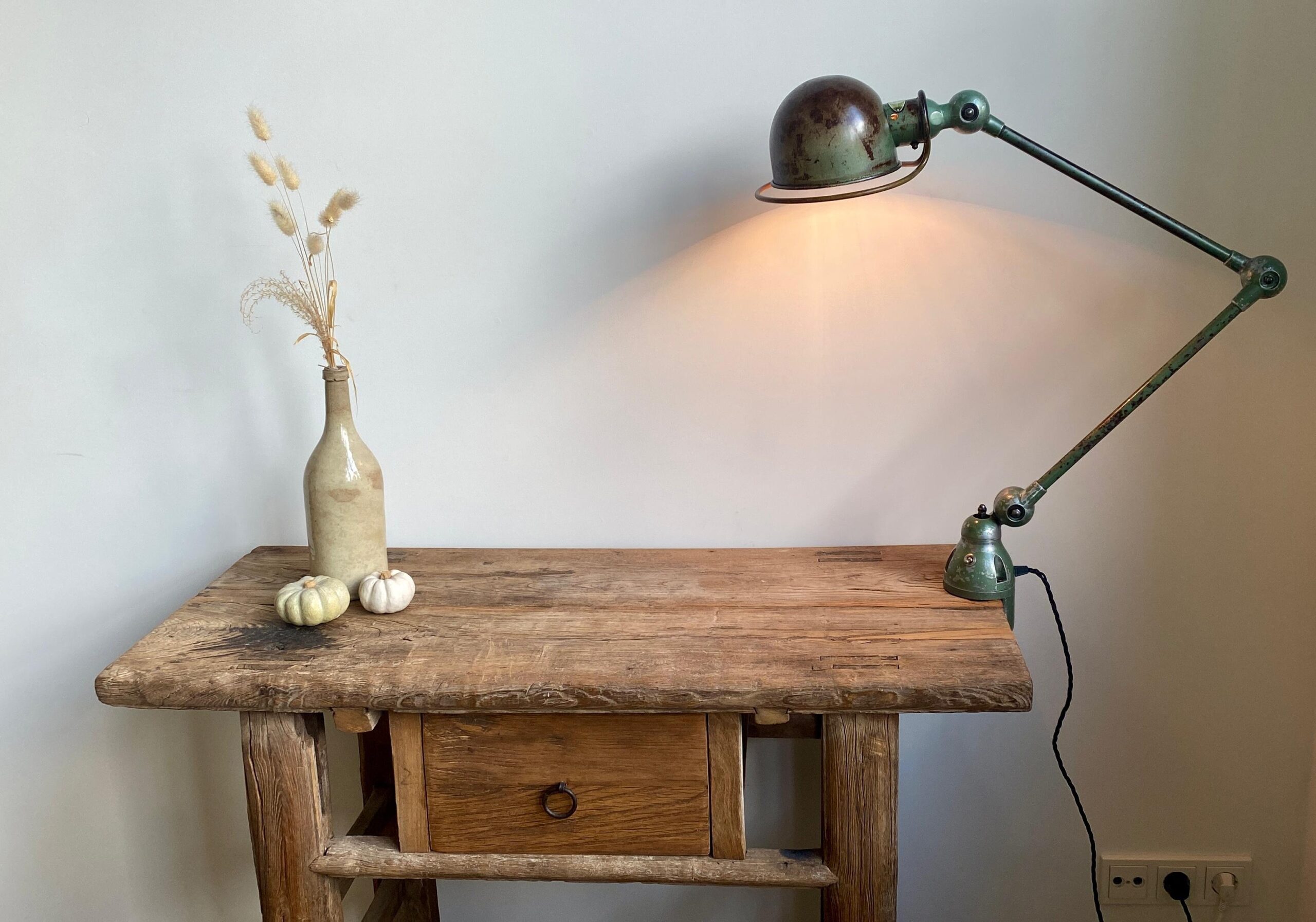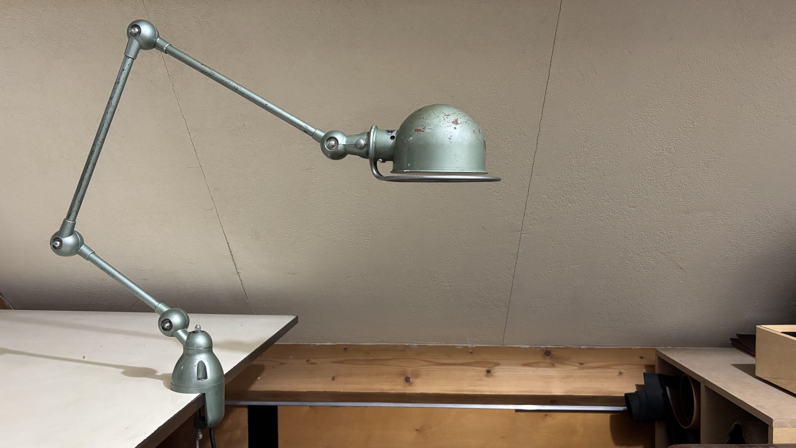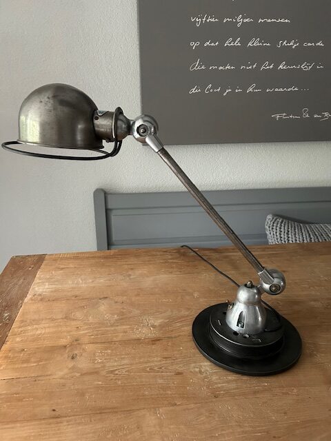 De Jieldé is ontworpen voor verlichting van werkplekken, hier een Jieldé als bureaulamp.