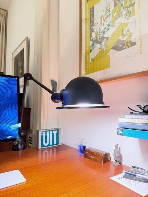Voor Henriëtte uit Groningen een drie armige Jieldé als werklamp voor haar bureau. Precies waar de Jieldé voor gemaakt is en waar hij uitermate geschikt voor is. Henriëtte heeft weer zicht en licht op haar werk en is erg blij met het resultaat.