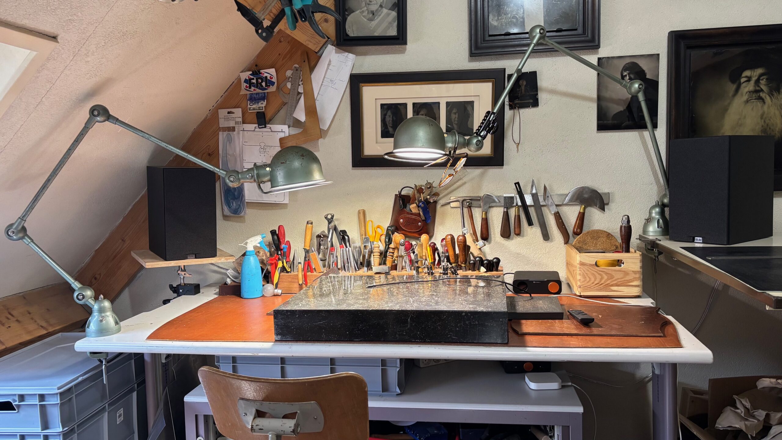 Nog een mooie foto van G.J. uit Kaatsheuvel. Hij heeft om onder het schuine dak te kunnen draaien gekozen voor een arm van 25 cm. En allebei de lampen met een bureauklem. Wederom een voorbeeld dat Jieldé lampen verslavend werken, heb je er éen dan wil je er vaak meer. Sommige klanten hebben er al 4 of 5 gekocht.