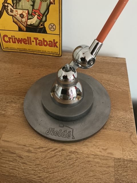 Let ook op deze mooie voet, met het Jieldé logo erin gegraveerd. Heel mooi gedaan.